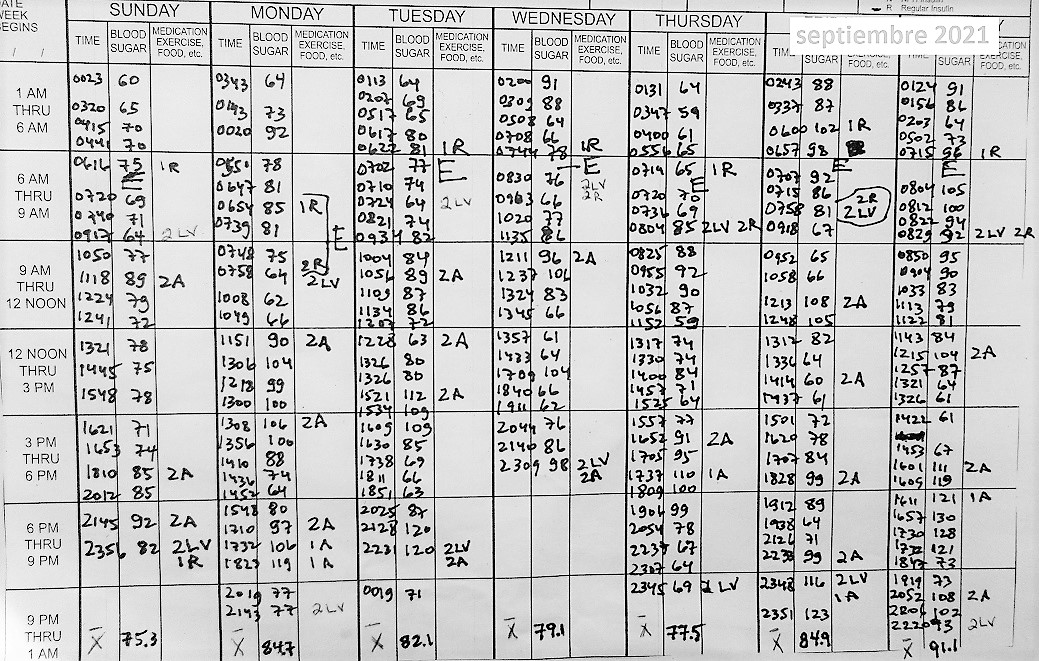 El Glucograf es un formato diseñado por el Dr. Richard K. Bernstein precisamente para proporcionar las respuestas a muchas preguntas acerca del automanejo glucémico de la DM1 y DM2.